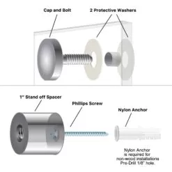 - 1 inch Chrome Finished Standoff Hardware + Mounting Screws